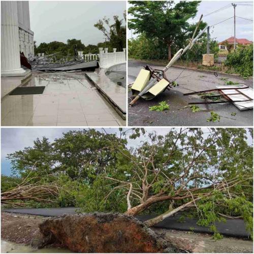 Diterjang Badai! Kanopi Kantor Bupati Rohil Ambruk, Pohon Bertumbangan di Jalan Lintas Pesisir