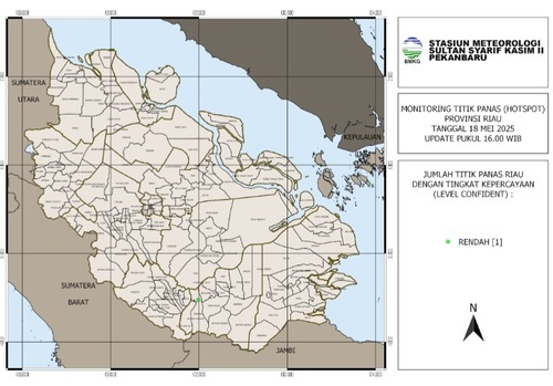 PEKANBARU (BabadNews) - Badan Meteorologi, Klimatologi, dan Geofisika (BMKG) Stasiun Pekanbaru merilis data terbaru mengenai jumlah titik panas (hotspot) yang terdeteksi di wilayah Sumatera hingga pukul 23.00 WIB.Prakirawan BMKG Stasiun Pekanbaru, Mari Frystine, menyampaikan rincian sebaran hotspot di berbagai provinsi."Berdasarkan pantauan satelit terkini, total titik panas yang terpantau di seluruh wilayah Sumatera adalah 34 titik," ujar Mari Frystine pada Senin (19/5/2025).Mari