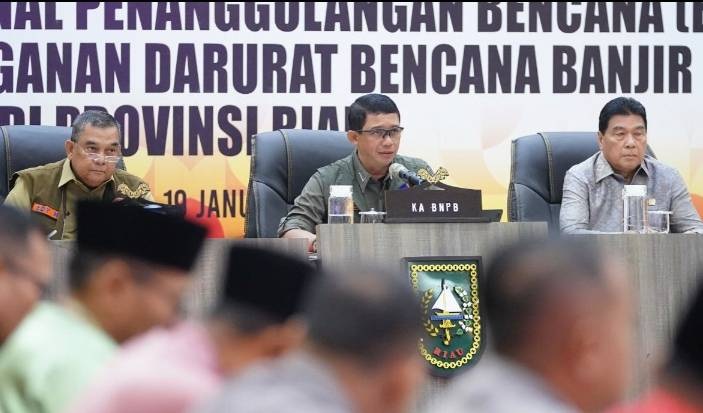 babadnews.com PEKANBARU - Badan Nasional Penanggulangan Bencana (BNPB) berencana melakukan Teknologi Modifikasi Cuaca (TMC) untuk mengalihkan awan hujan di Provinsi Riau sebagai antisipasi banjir besar. Demikian disampaikan Kepala BNPB, Letjen TNI Suharyanto saat rapat koordinasi penanganan banjir di Provinsi Riau, Jumat (19/1/2024) di Gedung Daerah Riau, Jalan Diponegoro Pekanbaru. "Kita sudah sepakat dalam waktu satu dua hari ini kita lakukan TMC (di Riau), nanti saya koordinasi dengan Lanud