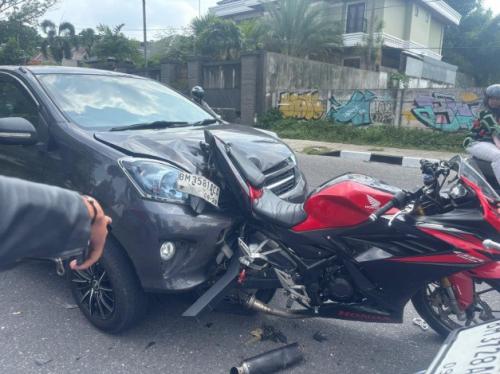 Honda CBR Diseruduk Agya di Jalan Diponegoro, Pelajar Terpental