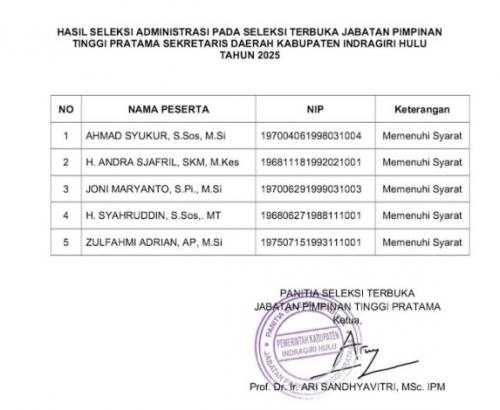 Seleksi Sekda Inhu, Satu Pejabat Pemko Pekanbaru Ikut Bertarung