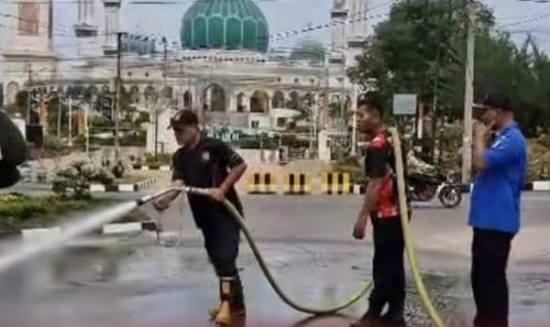 Sambut HUT ke-26, Pemkab Rohul Percantik Jalan Protokol dan Islamic Center