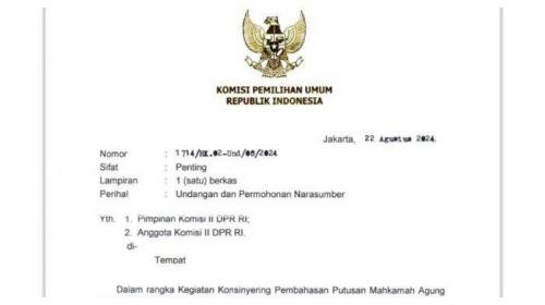 Beredar Undangan Rapat dari KPU Bahas Putusan MA, DPR Sebut Salah Ketik